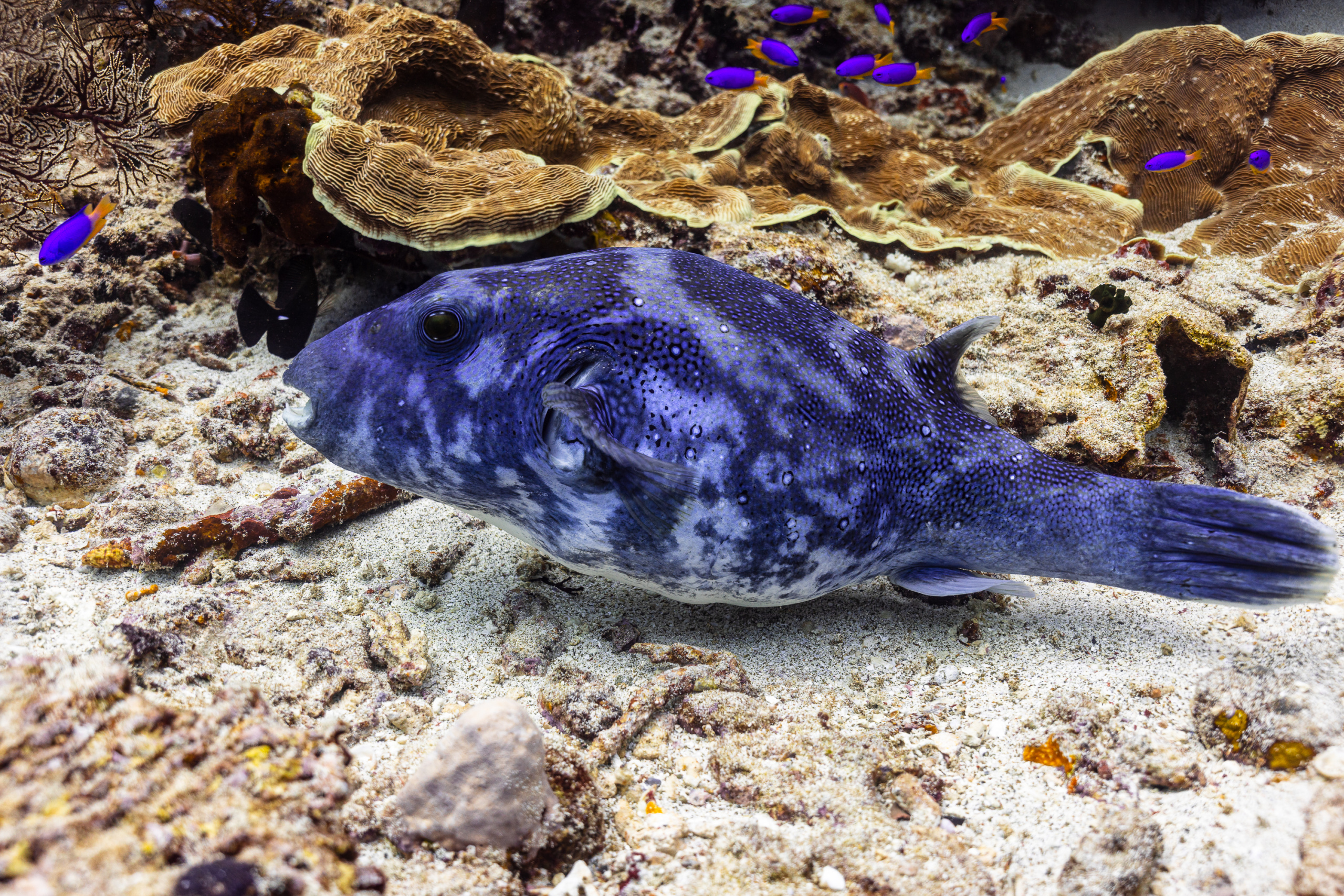 Et bien sûr, nous irons plonger sur les 2 sites Crystal Rock et Castle Rock… Le courant est dantesque, même avec les « hooks », il faut bien repérer le prochain rocher où s’accrocher avant de se libérer du précédent… Le courant attire les gros, requins gris, pointes noires, raies manta, banc de carangues et baracudas.