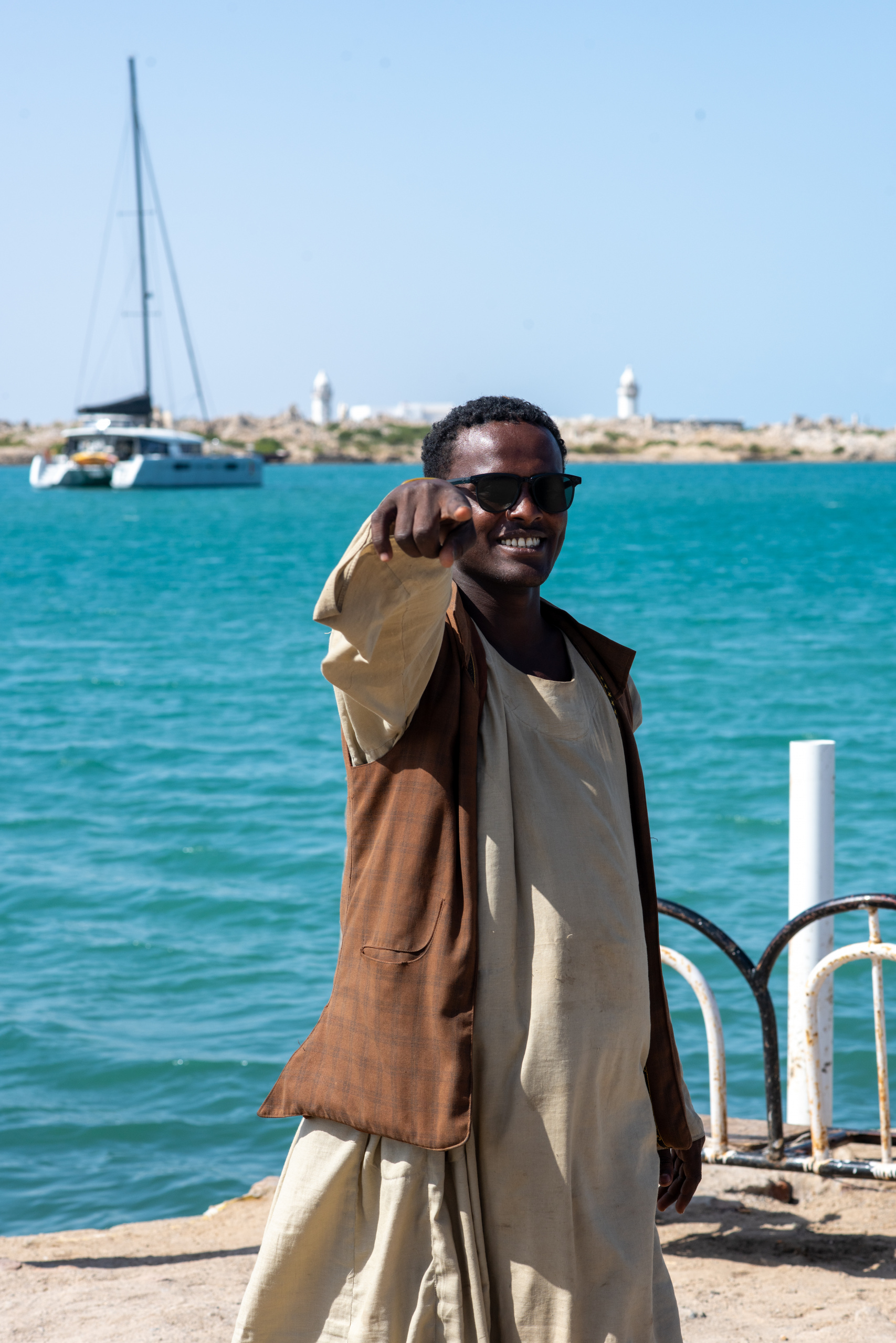 Nous nous positionnons cette fois entre les rails montant et descendant de façon à éviter tout problème avec les garde-côtes Érythréens. Le vent, la houle et les courants sont favorables, notre vitesse oscille entre 9 et 11 Noeuds ! Le lendemain nous passons par le travers des îles Hanish du Yemen. Il ne nous reste plus qu’à atteindre la latitude de la frontière saoudienne et nous serons sauvés ! Le vent faiblit et tourne au Nord comme prévu, nous prenons un cap vers la côte saoudienne afin de finir par un long bord au près tribord amure vers Suakin que nous atteignons au bout de 4 jours de traversée.